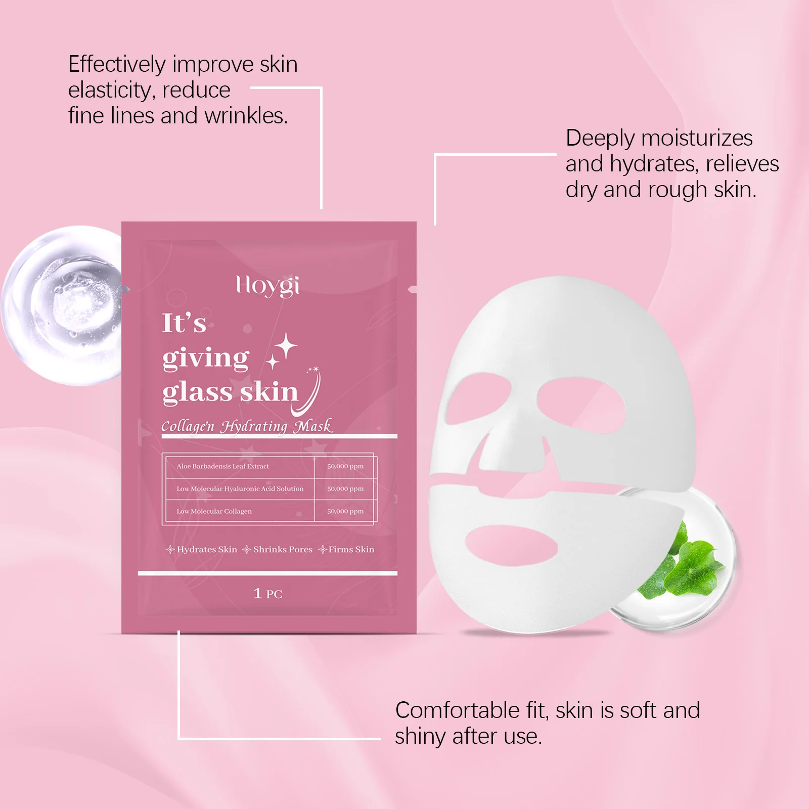 Hoygi Collagen Face Mask Anti Aging Firming Moisturizing Refreshing Shrink Pore Brightening Overnight Mask Hyaluronic Acid Facial Mask