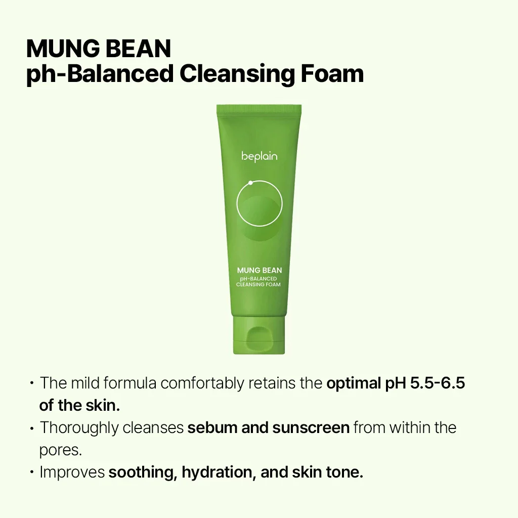 Korean Beplain Mung Bean Pore Serum,Deep Pore Cleansing Foam,Makeup Remover Oil and Clay Mask Facail Firming Skin Care Products